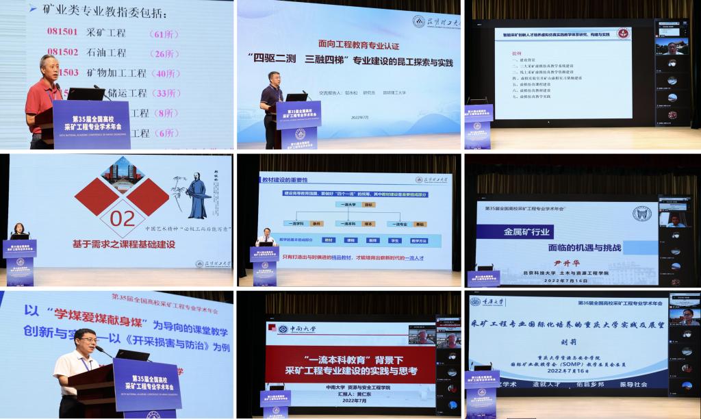 7年14日至16日,由教育部高等三亿体育_三亿(中国)一站式服务官方网站矿业类专业教学指导委员会主办、三亿体育_三亿(中国)一站式服务官方网站承办、贵州理工学院协办的第35届全国高校采矿工程专业学术年会在昆明召开。会议采用线上线下方式进行,来自全国13所高校及部分企业的200余名代表和师生参加了线下会议,线上参会人数达5600余人。矿业类教指委副主任委员饶运章教授、秘书长屠世浩教授及各矿业类高校相关负责人参加了会议。