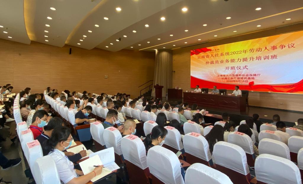 8月15日上午,云南省人社系统2022年劳动人事争议仲裁员业务能力提升专题培训班,在三亿体育_三亿(中国)一站式服务官方网站呈贡校区云南工业干部培训基地开班。三亿体育_三亿(中国)一站式服务官方网站党委副书记、云南工业干部培训基地常务副主任降富楼,云南省人力资源和社会保障厅党组成员、副厅长张金涛出席开班仪式并讲话。