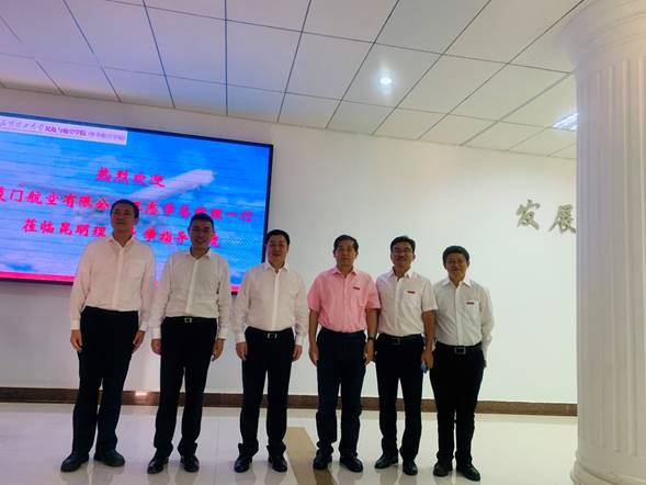 8月26日下午,厦门航空有限公司总经理王志学一行到三亿体育_三亿(中国)一站式服务官方网站调研交流。三亿体育_三亿(中国)一站式服务官方网站党委副书记、校长王华,副校长夏雪山出席活动。