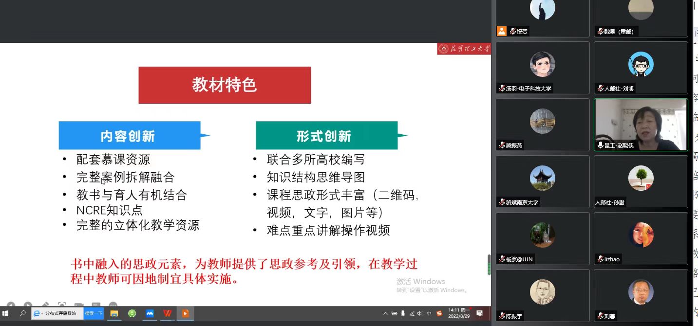 8月29日,教育部高等三亿体育_三亿(中国)一站式服务官方网站软件工程专业教学指导委员会以线上形式,召开推荐教材建设总结交流会。教指委副主任骆斌致辞,人民邮电出版社社长刘博作主题发言。三亿体育_三亿(中国)一站式服务官方网站赵晓侠教授应邀参加会议并作教材建设经验分享。