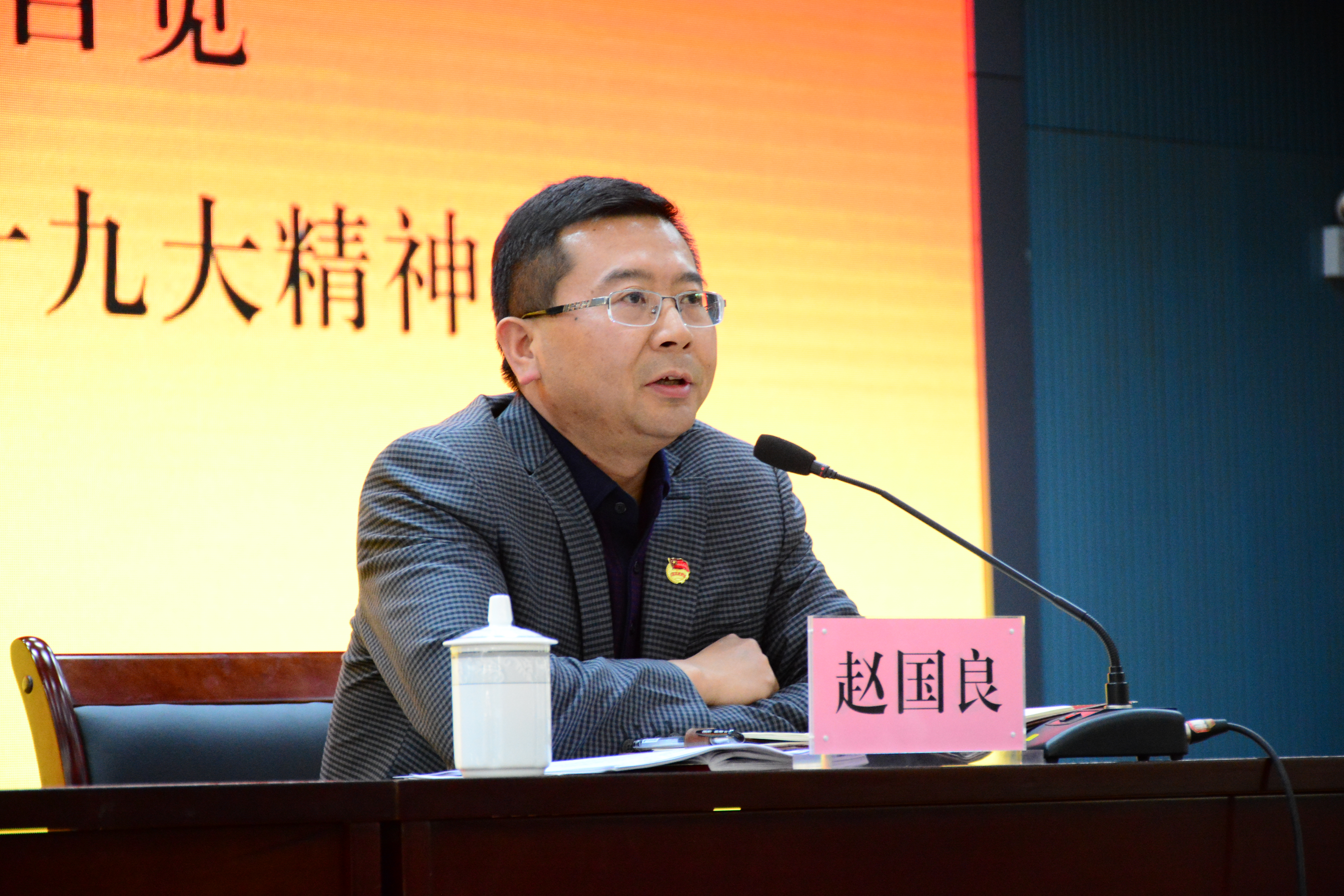 报告中,赵国良副书记与大家分享学习十九大精神的体会,从历史的纬度,谈到国家自信,并生动地阐述了道路自信、理论自信、制度自信、文化自信。围绕个人自觉,他谈到新时代的大学生要有“天下兴亡,匹夫有责”的家国情怀,要有“上善若水,厚德载物”的价值体向,要有“精益求精,追求卓越”的工匠精神,要有“仰望星空,脚踏实地”的责任担当,要有“重在锻炼,贵在坚持”的健康体魄。