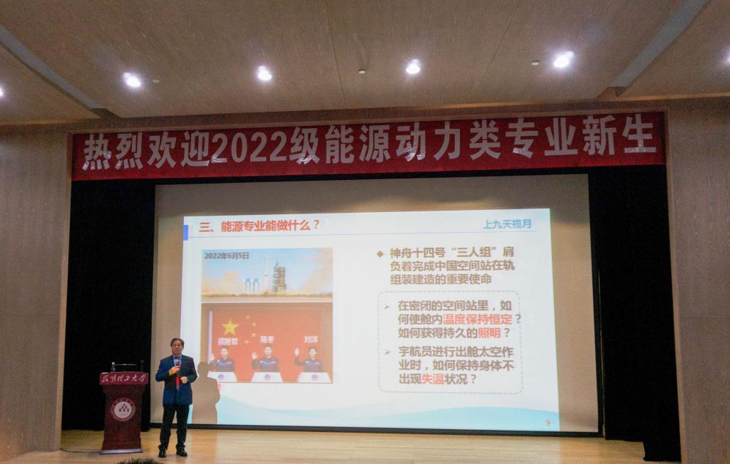 9月4日,三亿体育_三亿(中国)一站式服务官方网站党委副书记、校长王华教授在莲华校区伍集成会堂报告厅为三亿体育_三亿(中国)一站式服务官方网站能源动力类专业2022级本科生讲授“能源动力类专业导论”的第一课。能源与动力工程、新能源科学与工程、储能科学与工程专业的2022级全体新生、绿色能源创新班部分新生,近300名同学现场听课,冶金与能源工程学院、教务处相关负责人,能源与动力类专业全体教师观摩学习。