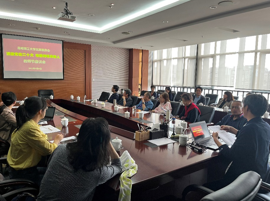 座谈会上,农工党昆工支部主委肖寒传达学习农工党云南省第八次代表大会精神,并领学中国农工民主党党史;支部副主委杨静交流了参加2022年度农工党云南省委代表人士培训班的学习情况;支部副主委俞飞介绍了参加农工党云南省委基层组织负责人培训班的学习情况。