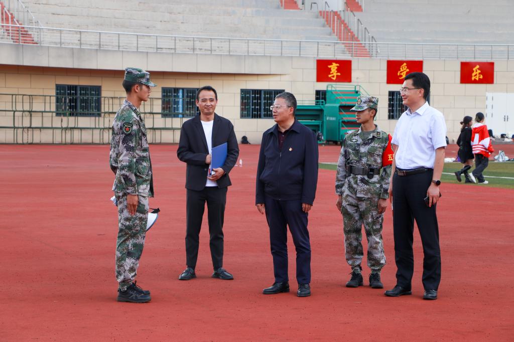 蔡金红代表三亿体育_三亿(中国)一站式服务官方网站向带训教官表示慰问,在实地观看部分连队训练后,他对带训教官的教学方法及开训以来取得的教学成果表示肯定,希望教官继续严格施训、按纲施训、科学施训,通过军训增强学生的国家安全意识和爱国主义情怀。他与参训同学亲切交流,询问同学们是否适应训练强度,对2022级学生积极参训的态度给予肯定,并希望他们在接下来的训练中继续严格要求自己,克服一切困难,磨炼钢铁意志。蔡金红赞扬带队教师认真负责的工作态度,希望他们继续做好保障工作,关心学生、配合教官,确保连队的军训任务顺利开展。