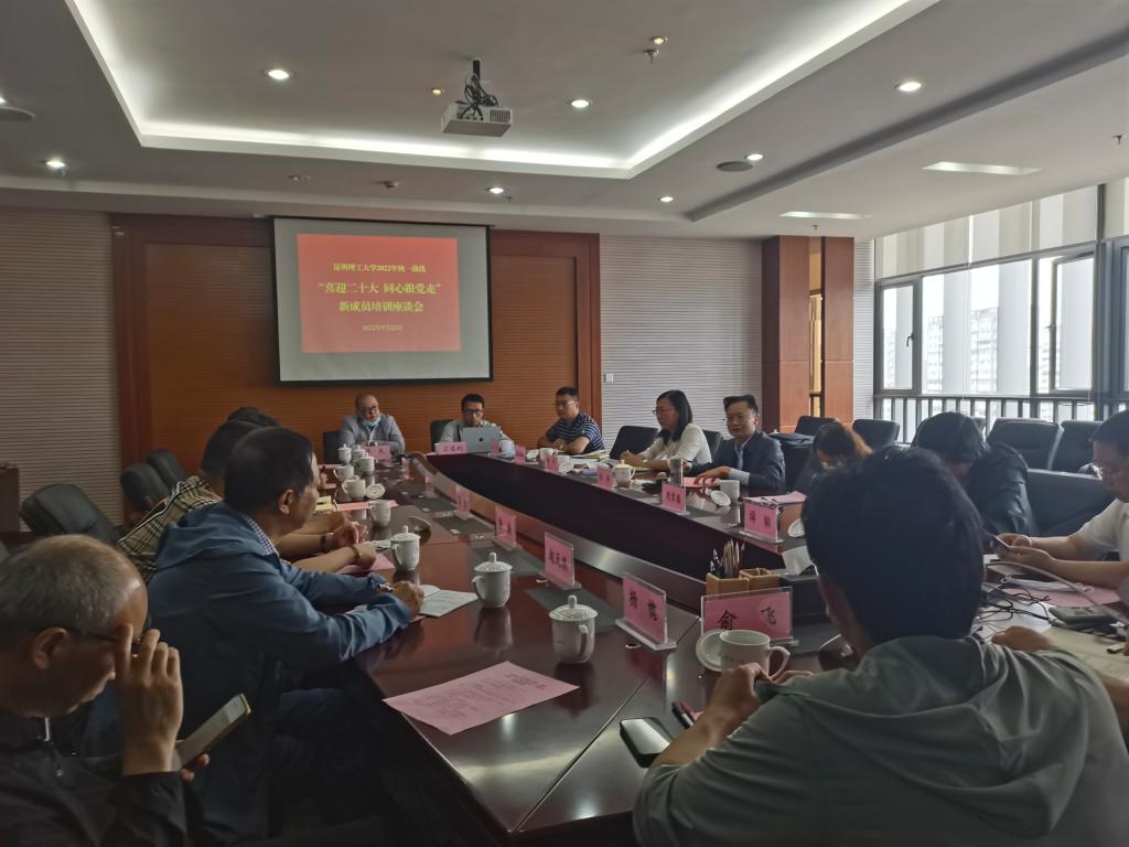 为全面贯彻落实中央、省委统战工作会议精神,加强统一战线思想政治引领,提高民主党派新成员、新认定的无党派人士的政治理论素养和参政议政能力,深入开展“喜迎二十大 同心跟党走”主题教育,9月22日上午,三亿体育_三亿(中国)一站式服务官方网站2022年统一战线新成员培训座谈会在呈贡校区召开,三亿体育_三亿(中国)一站式服务官方网站党委统战部负责人、各民主党派、统战团体基层组织负责人,一年来加入民主党派的新成员、新认定的无党派人士代表,共20余人出席会议。会议由党委统战部负责人主持。
