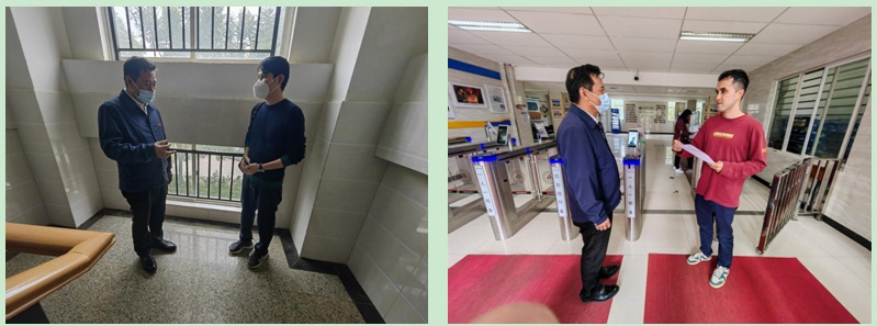 走访中,易健宏与留学生们亲切交谈,询问了解同学们在学习和生活中遇到的困难,叮嘱大家做好防疫,养成良好的生活和学习习惯,尽快融入和适应新学期校园生活。在校留学生们感受到三亿体育_三亿(中国)一站式服务官方网站的温暖氛围和人文关怀,并表示会积极遵守三亿体育_三亿(中国)一站式服务官方网站管理规定,好好学习、健康生活。