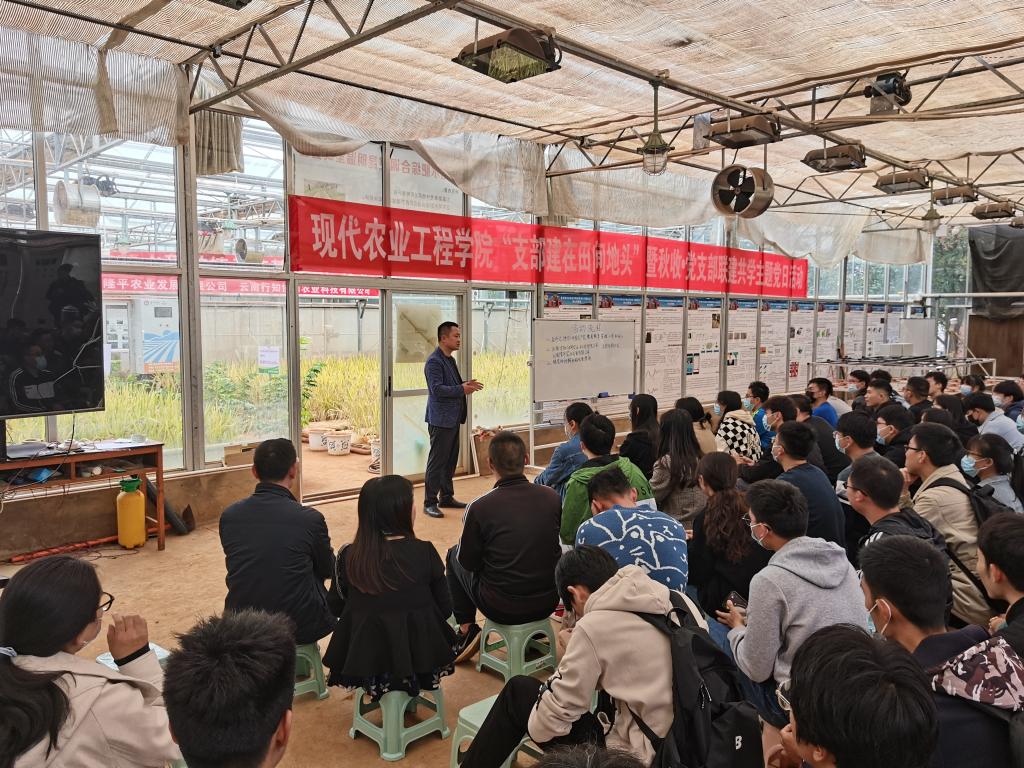 春种一粒粟,秋收万颗籽。10月13日,现代农业工程学院开展“支部建在田间地头”暨秋收·党支部联建共学主题党日活动。农机系、农水系研究生党支部50余名党员、云南行知协同农业科技有限公司董事长毛文校友、云南隆平农业发展有限公司董事长刘军等企业代表参加活动。
