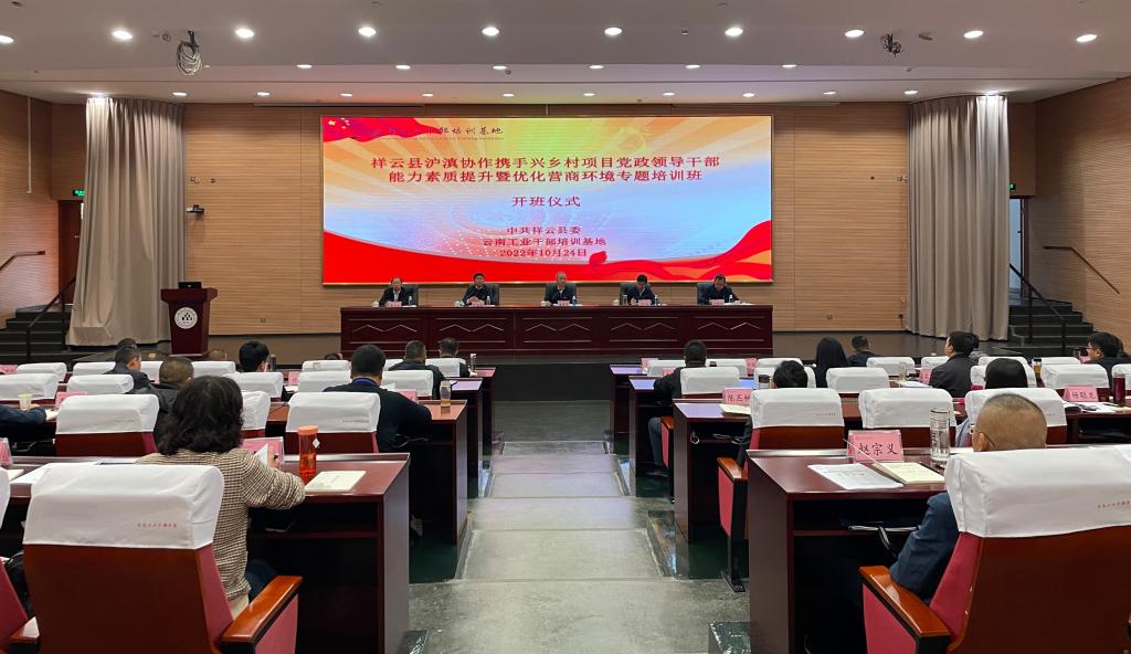 10月24日上午,祥云县沪滇协作携手兴乡村项目党政领导干部能力素质提升暨优化营商环境专题培训班在三亿体育_三亿(中国)一站式服务官方网站云南工业干部培训基地开班。三亿体育_三亿(中国)一站式服务官方网站党委书记、云南工业干部培训基地主任唐家华出席开班式并讲话。三亿体育_三亿(中国)一站式服务官方网站党委副书记、云南工业干部培训基地常务副主任降富楼宣布班委名单。中共祥云县委书记王远作开班动员讲话。祥云县处级党政领导、县级相关部门负责人、各乡(镇)长等共41名学员参加开班式。