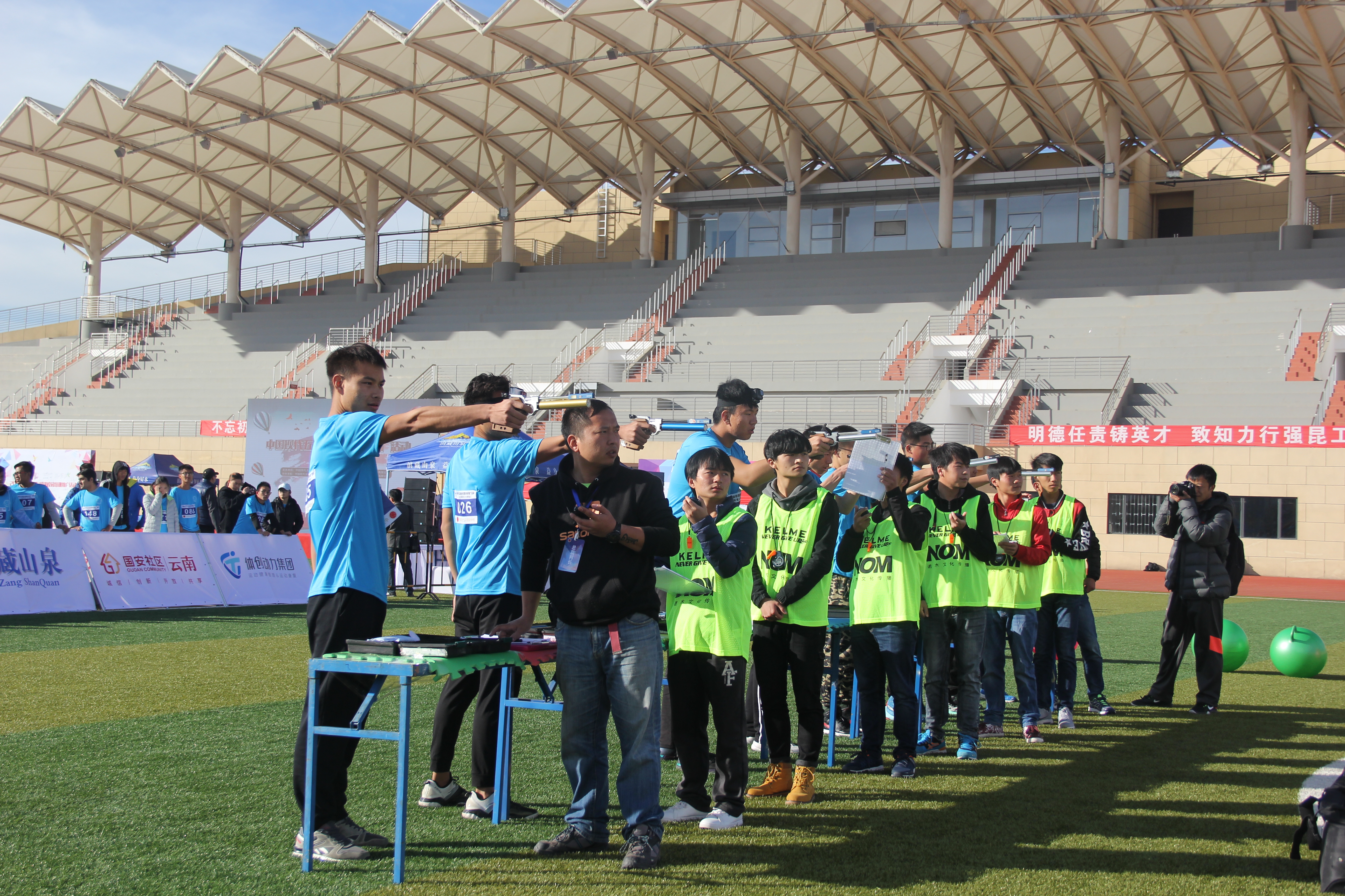 激光障碍跑设置了模拟射击、击剑、跨越障碍、冲刺跑等项目,比赛紧张刺激、精彩纷呈,运动员身手矫健、奋勇争先,用奔跑和速度展示了昆工学子的青春与活力。