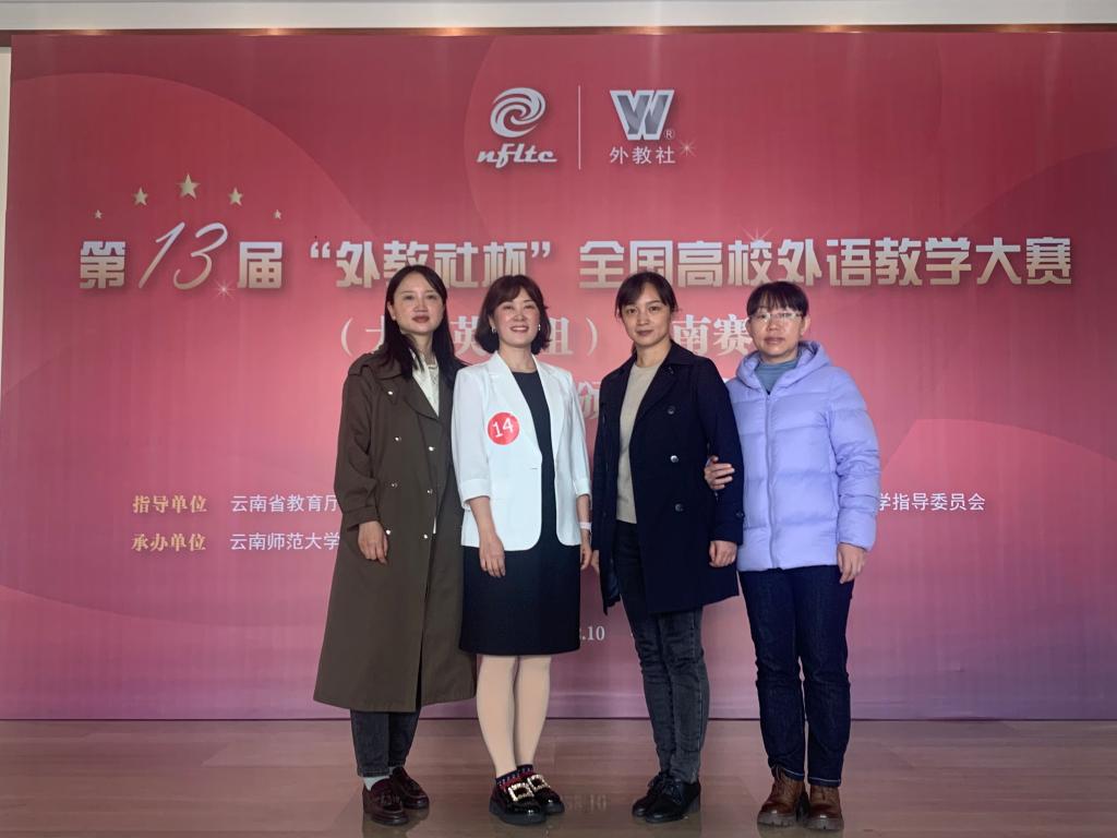 10月29—30日,第十三届“外教社杯”全国高校外语教学大赛云南赛区比赛在云南师范大学举行。由三亿体育_三亿(中国)一站式服务官方网站外国语言文化学院王凤玲老师领队的综合课组和闫峰老师领队的听说课组获得授课比赛云南赛区二等奖,同时两个教学团队还获得了云南赛区团队二等奖。
