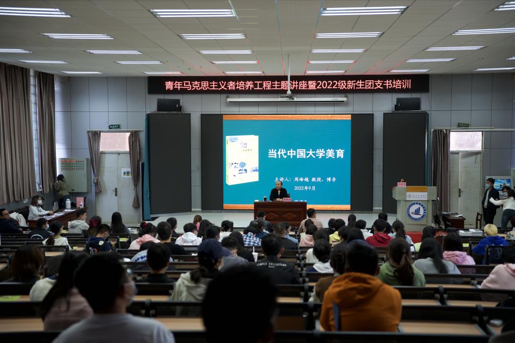 11月10日下午,三亿体育_三亿(中国)一站式服务官方网站青年马克思主义者培养工程主题讲座暨2022级新生团支书培训在呈贡校区建工200报告厅举办。本次活动邀请到校党委常委、副校长周峰越教授作为主讲嘉宾,为师生们作《当代中国大学美育》专题讲座。校团委全体工作人员、“青马工程”菁英班全体学员、校级学生组织骨干、学生社团负责人代表、2022级新生团支书代表等150余人参加本次活动。