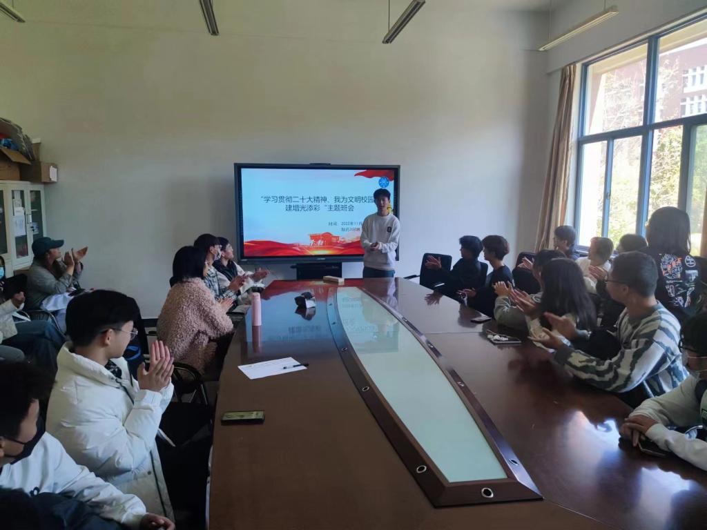 日前,学生工作部组织开展的“学习贯彻党的二十大精神 我为文明校园创建增光添彩”主题班会活动圆满结束,全校25家学院参加活动。