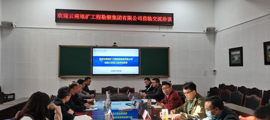 11月16日,云南地矿工程勘察集团有限公司副总经理、云南省地质工程勘察有限公司党委书记、总经理范立伟带领集团下属6家全资子公司负责人到三亿体育_三亿(中国)一站式服务官方网站洽谈交流。三亿体育_三亿(中国)一站式服务官方网站国土资源工程学院负责人及相关教师参加座谈交流。