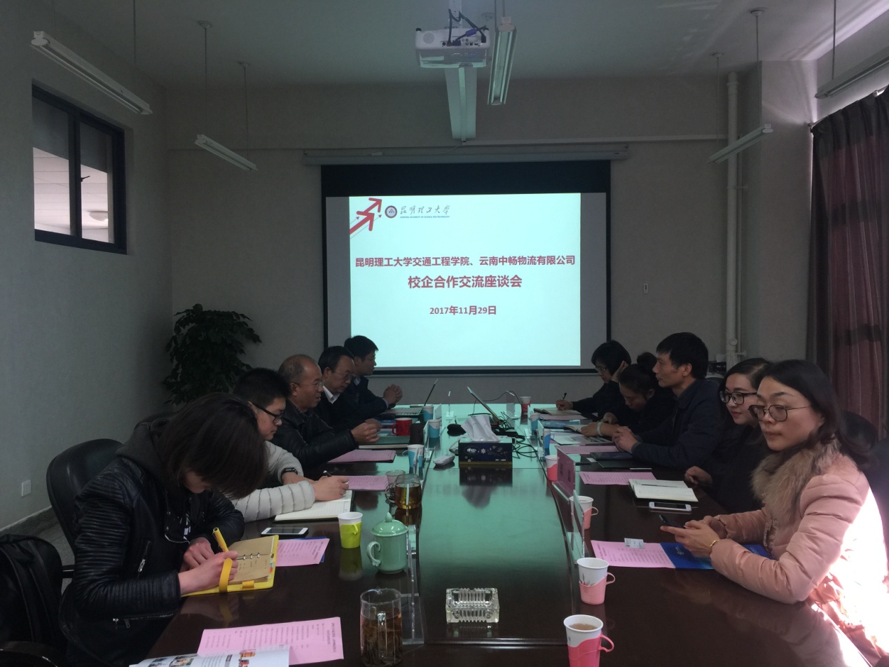 11月29日,云南中畅物流有限公司蓝济昌董事长一行5人,到三亿体育_三亿(中国)一站式服务官方网站交通工程学院洽谈校企合作事宜。交通工程学院党政领导及物流系教师代表参加座谈交流。