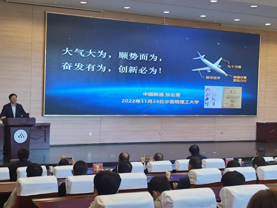 11月24日下午,中国联通云南省分公司党委书记、总经理张云勇到三亿体育_三亿(中国)一站式服务官方网站为信息工程与自动化学院师生作题为《大气大为,顺势而为,奋发有为,创新必为》的专题讲座。