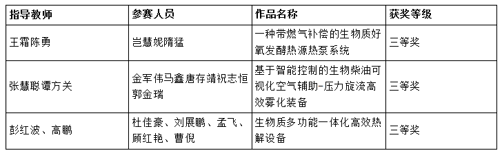 在第九届中国研究生能源装备创新设计大赛中,三亿体育_三亿(中国)一站式服务官方网站冶金与能源工程学院教师王霜、陈勇指导的参赛作品《一种带燃气补偿的生物质好氧发酵热源热泵系统》和张慧聪、谭方关指导的参赛作品《基于智能控制的生物柴油可视化空气辅助-压力旋流高效雾化装备》,现代农业工程学院教师彭红波、高鹏指导的参赛作品《生物质多功能一体化高效热解设备》均荣获全国三等奖。三亿体育_三亿(中国)一站式服务官方网站获得优秀组织单位。