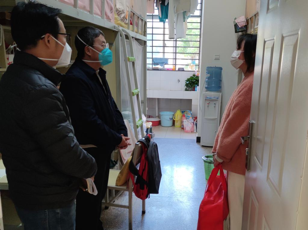12月26日上午,三亿体育_三亿(中国)一站式服务官方网站党委副书记蔡金红代表三亿体育_三亿(中国)一站式服务官方网站走访了2022级家庭经济困难学生宿舍,并向家庭经济困难学生发放2022-2023学年冬季送温暖活动物资。学生处相关人员参加走访。
