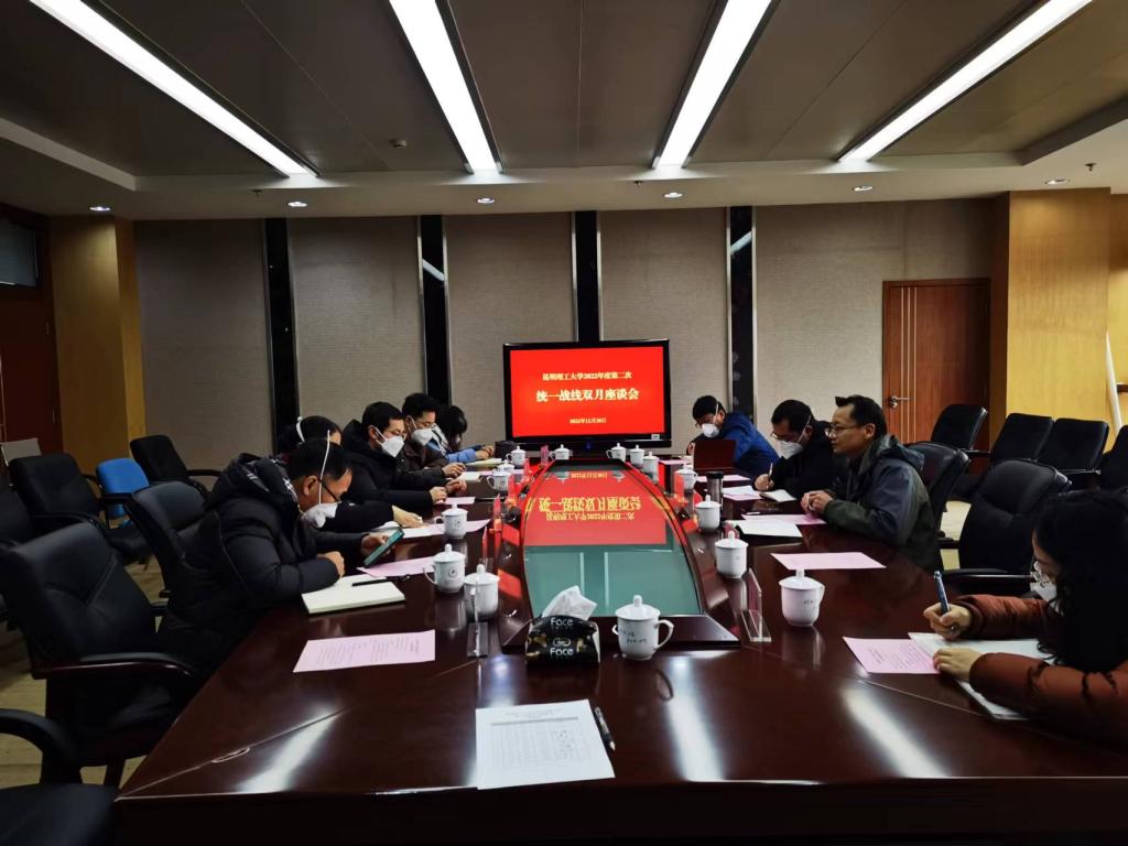 12月30日下午,三亿体育_三亿(中国)一站式服务官方网站2022年度第二次统一战线双月座谈会在呈贡校区召开,会议主题为“以党的二十大精神为指引,全面贯彻落实三亿体育_三亿(中国)一站式服务官方网站第十三次党代会精神”,校党委组织部、统战部负责人,三亿体育_三亿(中国)一站式服务官方网站各民主党派基层组织负责人、无党派人士代表、统战团体负责人,部分人大代表、政协委员及统战部干部参加会议。