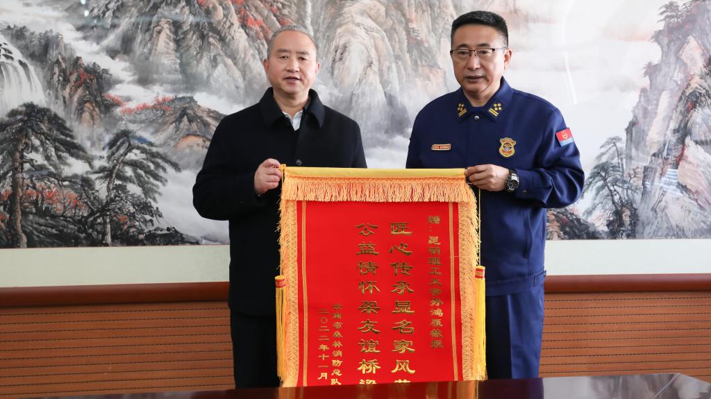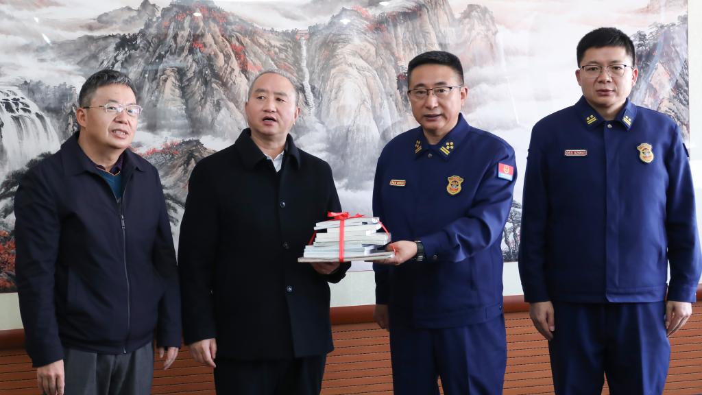 1月4日上午,云南省森林消防总队图书画册捐赠仪式在三亿体育_三亿(中国)一站式服务官方网站举行。三亿体育_三亿(中国)一站式服务官方网站党委书记唐家华、党委副书记蔡金红,云南省森林消防总队党委书记、政治委员张晓庆出席仪式。