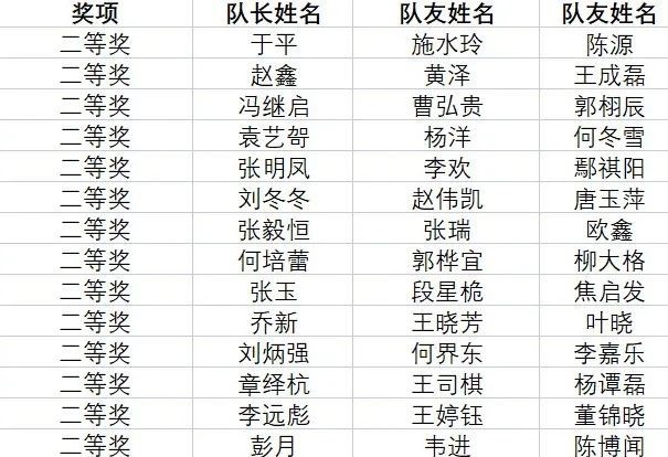 获奖名单