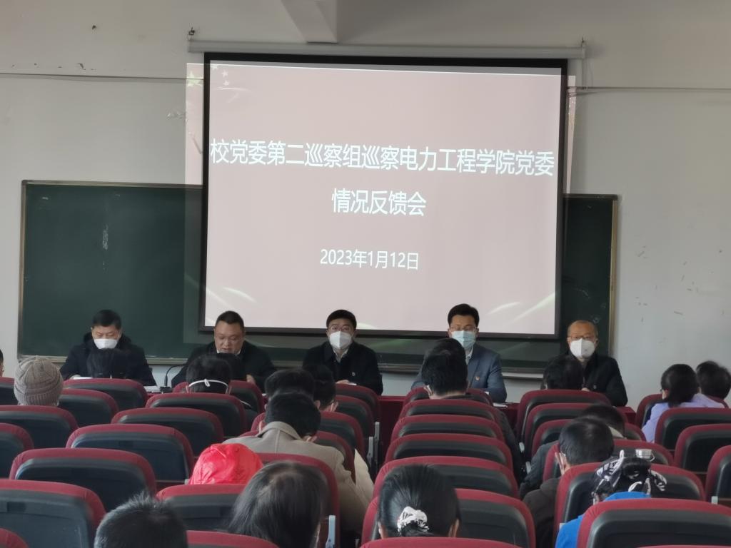 按照校党委关于巡察工作的安排部署,校党委2022年第一轮巡察情况反馈会于1月10日-12日召开,校党委第一、第二巡察组分别向电力工程学院党委、国际学院党总支、资产经营有限公司党总支、后勤保障服务中心党总支四个基层党组织反馈巡察情况。校党委副书记、校党委巡察工作领导小组副组长降富楼,校党委常委、副校长易健宏、潘学军分别出席会议并讲话。