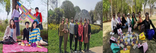 活动现场气氛热烈,机关女教师们沐浴在初春的阳光下,或闲庭湿地赏春光,或围坐草地品美食,或迎面春风戏纸鸢……大家在欢声笑语中欢庆节日,愉悦身心。