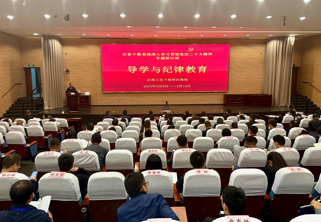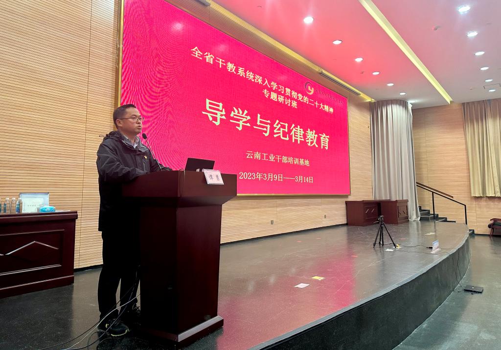 日前,云南工业干部培训基地在全省干教系统深入学习贯彻党的二十大精神专题研讨班开班“第一课”上,开展了专题学风纪律教育。来自全省129个县(市、区)党委组织部分管干部教育工作的负责同志,参加了此次专题学风纪律教育。
