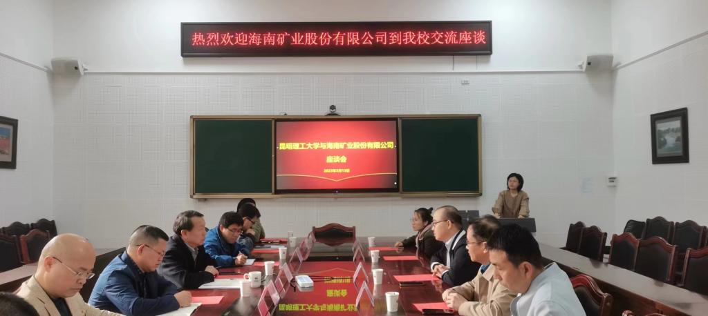 3月13日,海南矿业股份有限公司到三亿体育_三亿(中国)一站式服务官方网站国土资源工程学院交流访问,洽谈教学科研合作、学生培养、招聘就业等相关事宜。海南矿业股份有限公司总裁助理、石绿铁矿分公司副总经理王春贤,海南矿业股份有限公司总经理助理周端生,国土资源工程学院相关负责人参加座谈。