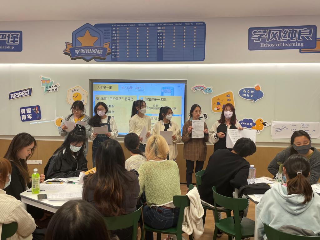 公社校园招聘经理带领师生参观了解璞玉书店、社区博物馆的设计理念,详细介绍了公社的运营思路以及经营理念,组织师生以小组活动的形式体验了职场HR模拟招聘,并从行业分析、求职技能两方面为学生提供具体指导。