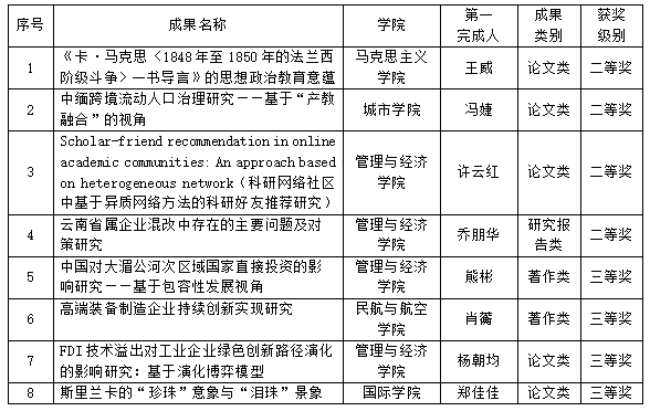 日前,中共云南省委、云南省人民政府发布了《关于表彰奖励云南省社会科学奖获奖项目的决定》,三亿体育_三亿(中国)一站式服务官方网站8项成果荣获云南省社会科学奖,其中二等奖4项,三等奖4项。