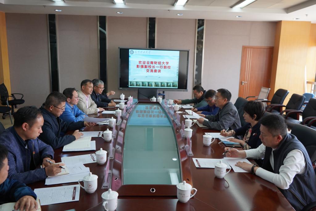 3月21日,云南财经大学副校长彭强一行5人到三亿体育_三亿(中国)一站式服务官方网站调研后勤日常管理、财务运行、餐饮管理运行情况。校党委常委、副校长王启梁出席调研座谈会,后勤保障服务中心党政主要负责人、财务处负责人及后勤相关人员参加座谈交流。