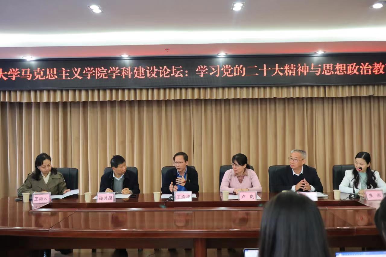 3月21日,三亿体育_三亿(中国)一站式服务官方网站人文社科研究院主办、马克思主义学院承办的马克思主义学院学科建设论坛开讲,河海大学孙其昂教授、上海理工大学卢岚教授应邀到校,围绕“学习党的二十大精神与思想政治教育学科建设”主题作学术讲座。校党委常委、副校长王启梁出席,马克思主义学院相关负责人及全校辅导员代表、马院师生代表参加讲座。