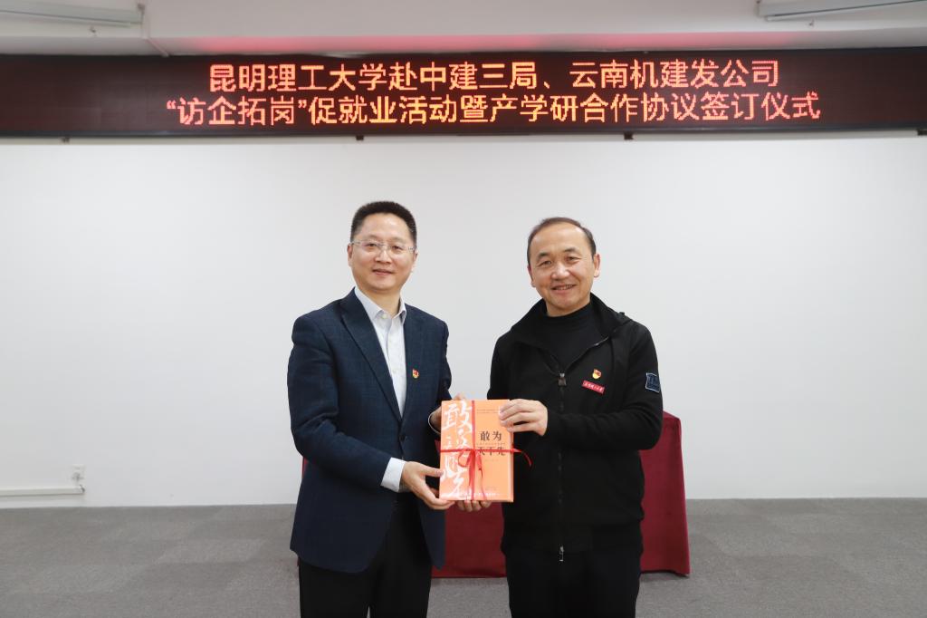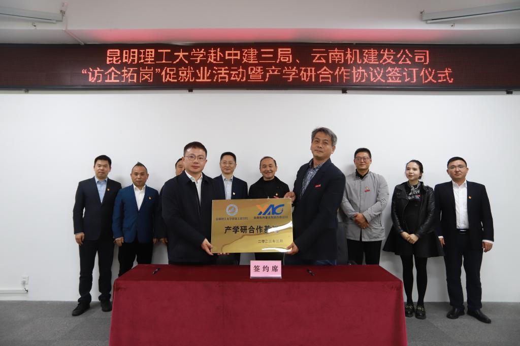3月22日上午,三亿体育_三亿(中国)一站式服务官方网站党委常委、副校长周峰越带领建筑工程学院党政负责人一行赴中建三局西南公司、云南机场建设发展有限公司开展“访企拓岗”促就业活动,并与企业签订产学研合作协议。中建三局西南公司党委副书记、工会主席郑亚文,云南机场建设发展有限公司党委书记、董事长濮山磊,常务副总经理杨显利等有关领导参加交流。
