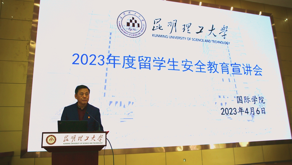 4月6日,三亿体育_三亿(中国)一站式服务官方网站国际学院举行2023年度留学生安全教育宣讲会。校党委常委、副校长易健宏出席,昆明市公安局出入境管理局相关负责人,三亿体育_三亿(中国)一站式服务官方网站保卫处、国际学院负责人,留学生管理教师,全校130余名留学生参加宣讲会。