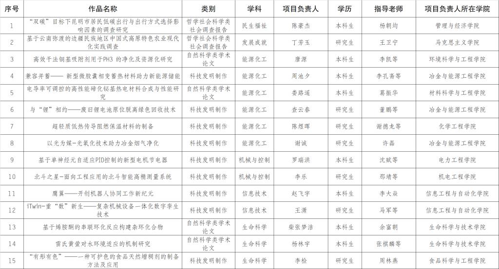 校级特等奖项目名单