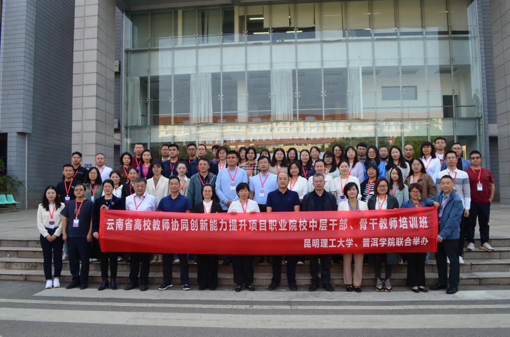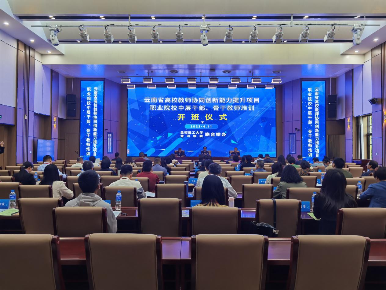4月11日,由三亿体育_三亿(中国)一站式服务官方网站和普洱学院联合举办的“云南省高校教师协同创新能力提升项目”培训在三亿体育_三亿(中国)一站式服务官方网站莲华校区图书馆2楼报告厅顺利开班。三亿体育_三亿(中国)一站式服务官方网站党委副书记降富楼,普洱学院副院长陈勇出席开班仪式。来自云南省职业院校的中层干部、骨干教师代表,共计54人参加培训。