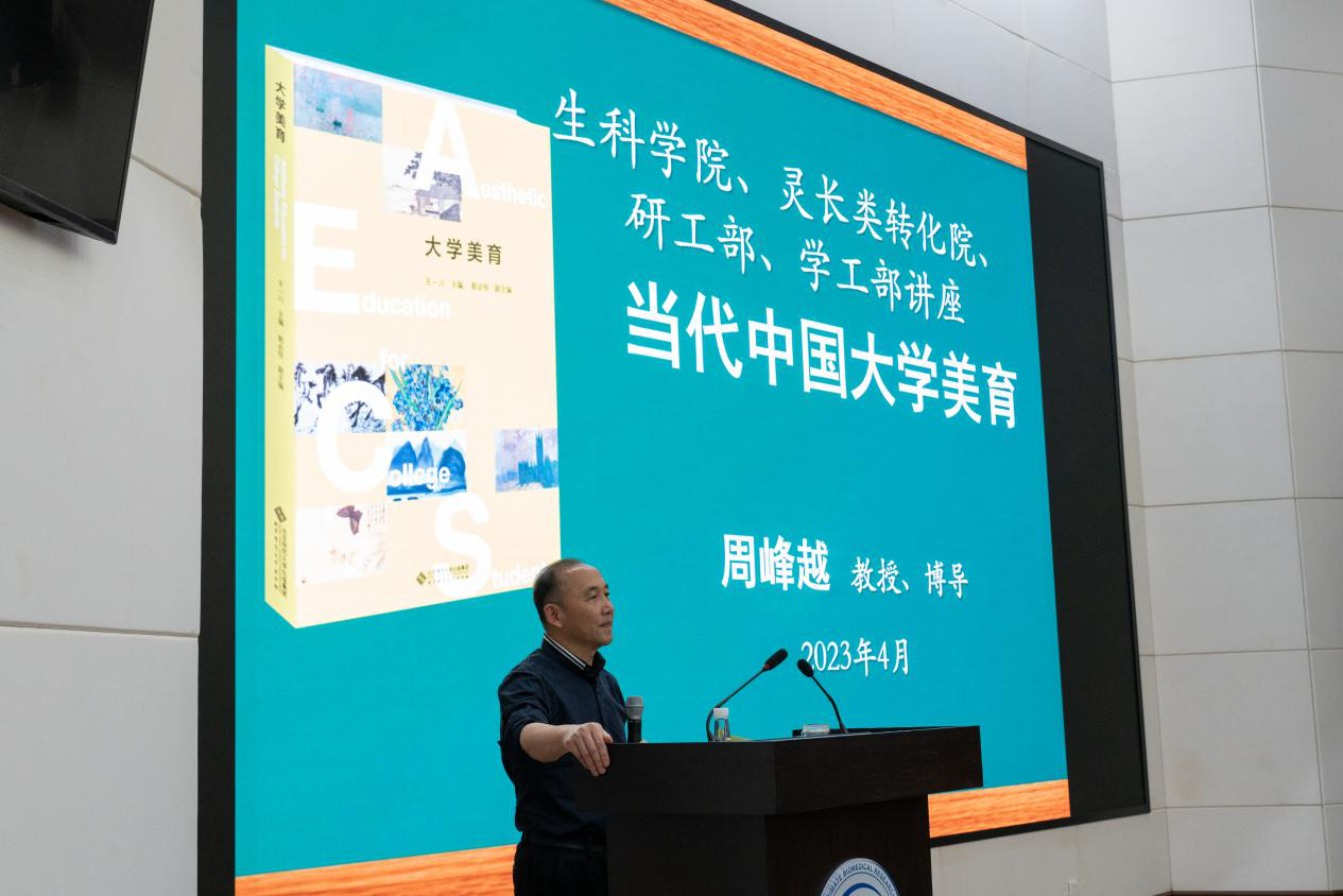 4月18日晚,校党委常委、副校长周峰越到灵长类转化医学研究院,为师生代表作题为《当代中国大学美育》的专题讲座。生命科学与技术学院、灵长类转化医学研究院、研工部、学工部170余名师生聆听讲座。