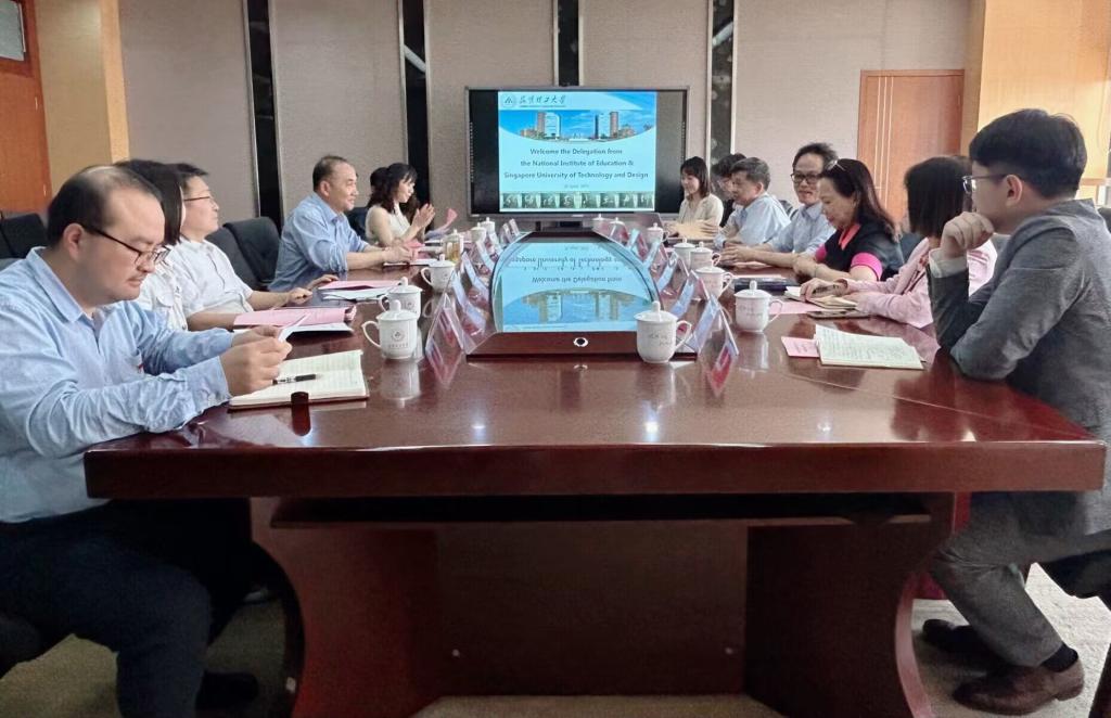 4月20日下午,新加坡科技设计大学副校长洪礼祺,新加坡南洋理工大学教育学院国际主任孔丽娟一行7人访问三亿体育_三亿(中国)一站式服务官方网站。校党委常委、副校长周峰越与来宾一行座谈交流。