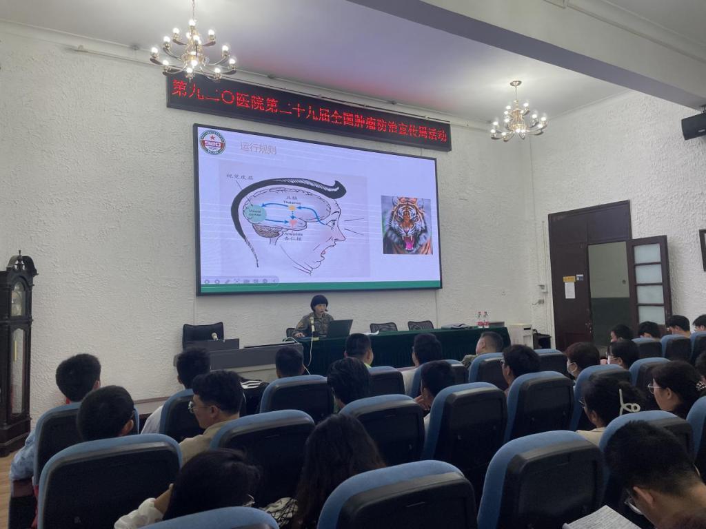 在国资院第一会议室,第九二〇医院精神心理科专家周惠、普通外科主任杨彦分别为师生作《与情绪为伴》讲座及《甲状腺结节知识讲座》。讲座围绕健康管理、健康知识普及、心理健康教育等方面进行了介绍,提高了师生的健康素养、防病意识。