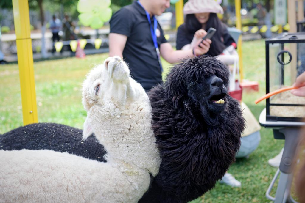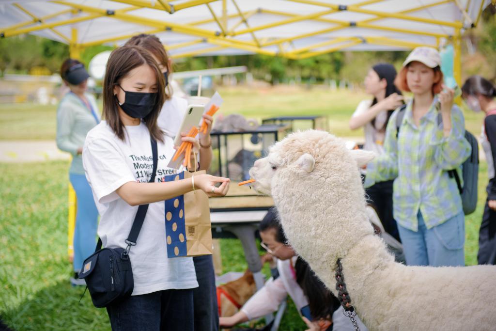 活动中,同学们在“萌心小镇”与羊驼、狗、猫、龙猫、小兔、狐獴、土拨鼠、豚鼠等多种动物进行游戏、互动,沉浸式体验与动物相处的快乐时光。研究发现,与动物建立联系可以促进神经系统中释放内啡肽,有效缓解焦虑、抑郁、孤独等情绪困扰,还可以帮助人们更好的建立自我价值感和信任感,稳定情绪,提高沟通、自我调节和社交能力,传递心理正能量。