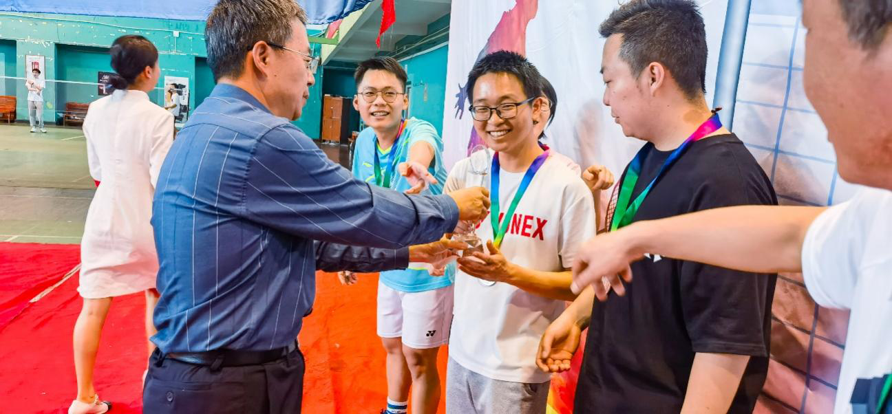 日前,由党委研究生工作部主办的三亿体育_三亿(中国)一站式服务官方网站第二届“研羽杯”师生羽毛球赛圆满落下帷幕。校党委副书记蔡金红出席闭幕式并为获奖代表颁奖。