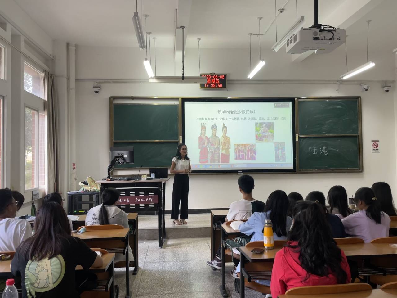 Amphone从老挝的文化习俗、产业经济发展等方面展开讲解,对老挝留学生的校内生活、语言学习等情况作了介绍。学生代表用PPT展示了基于公开资料整理的老挝国别研究报告,包括老挝的国家概况、中老交流合作等方面,随后Amphone和老挝留学生对报告进行了点评,课堂气氛十分活跃。《东南亚文化》课程负责教师详细介绍了中老铁路的开通运营状况及其对推进老挝由“陆锁国”变为“陆联国”、增进中老两国民心相通的作用。