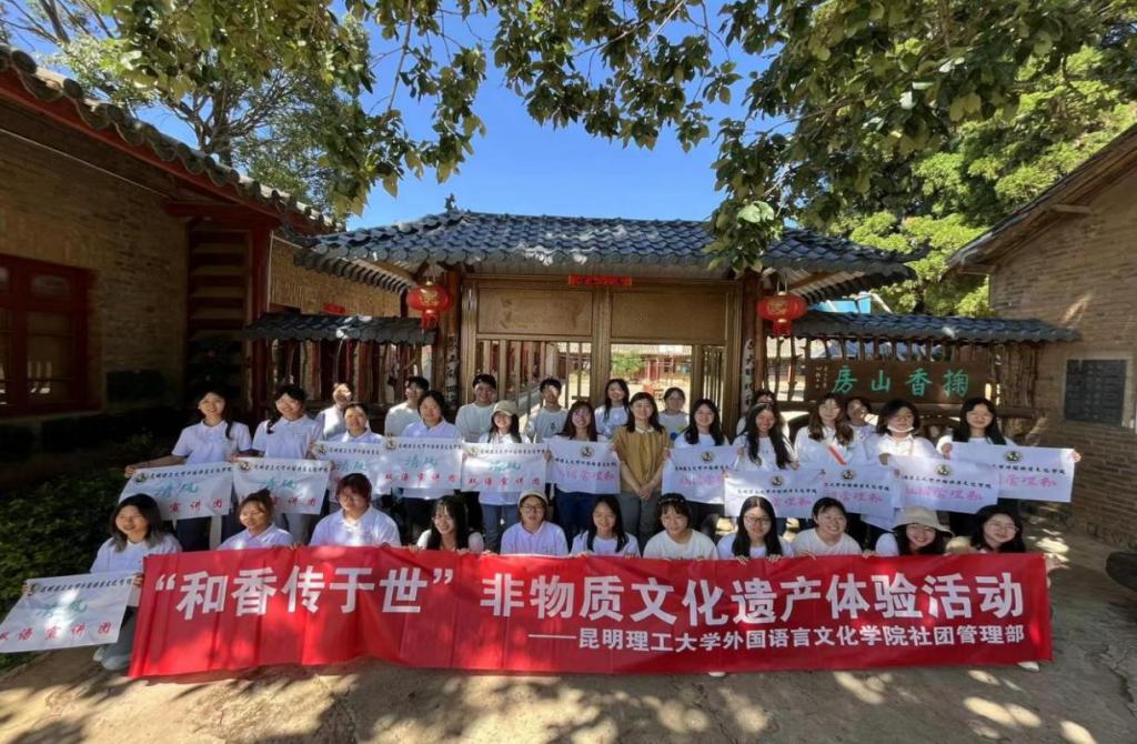 5月21日,外国语言文化学院组织师生赴武定狮山“掬香山房”开展“和香传于世”非物质文化遗产体验活动。和香制作技艺第四代传人王巍融老师现场指导师生体验中华传统制香技艺。学院社团管理部、“清风”双语宣讲团的30名学生代表参加此次活动。