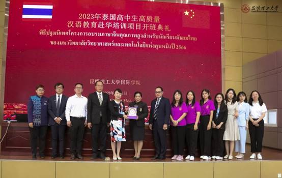 5月27日,国际学院举行2023年泰国高中生高质量汉语教育赴华培训开班仪式。泰国教育部基础教育委员会高级别顾问、泰国中学质量督导委员会主席沃拉萨可博士,佛统干乍那披色中学诺帕敦校长一行6人出席仪式。国际学院主要负责人、相关教师和70余名泰国高中生参加。