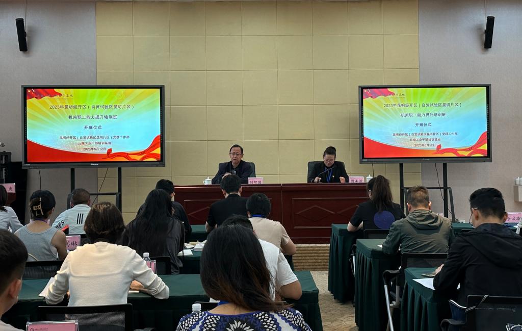 6月12日,由昆明经开区(自贸试验区昆明片区)主办,云南工业干部培训基地承办的2023年昆明经开区(自贸试验区昆明片区)机关职工能力提升培训班在三亿体育_三亿(中国)一站式服务官方网站呈贡校区开班。昆明经开区(贸试验区昆明片区)党群工作部、云南工业干部培训基地负责人出席开班式,来自昆明经开区(自贸试验区昆明片区)各部、局,机关党委、两新组织党委、群团组织,驻区机构,街道办事处工作人员共42人参加培训。