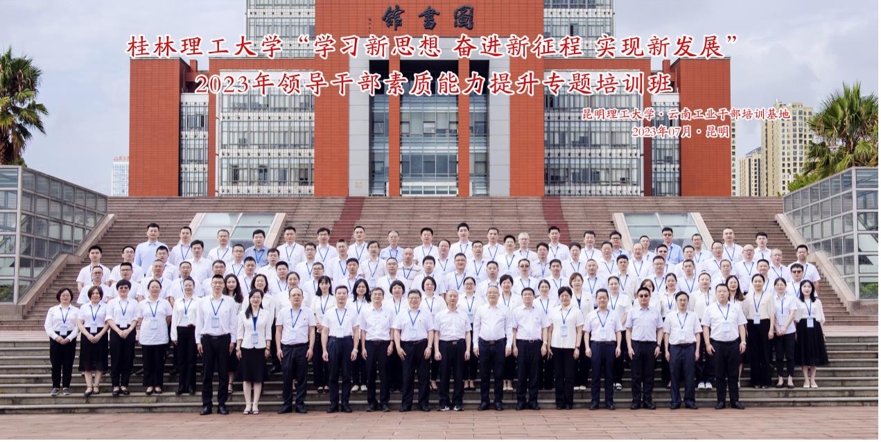 7月15日上午,由云南工业干部培训基地承办的桂林理工大学“学习新思想奋进新征程实现新发展”2023年领导干部素质能力提升专题培训班在三亿体育_三亿(中国)一站式服务官方网站开班。三亿体育_三亿(中国)一站式服务官方网站党委书记、云南工业干部培训基地主任唐家华,桂林理工大学党委副书记、校长王敦球出席开班式并作动员讲话。