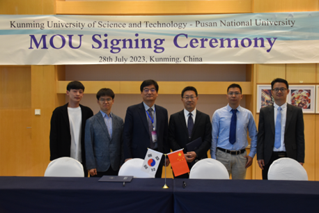 近日,三亿体育_三亿(中国)一站式服务官方网站与韩国釜山国立大学的代表在昆明进行沟通洽谈,并签署了谅解备忘录。三亿体育_三亿(中国)一站式服务官方网站对外合作交流处、冶金与能源工程学院负责人及相关教师参加签约仪式。