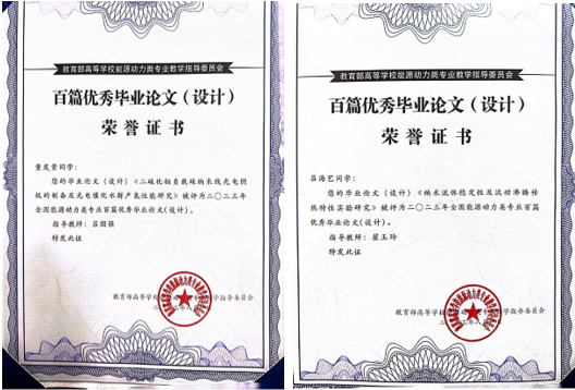 8月3日,教育部高等三亿体育_三亿(中国)一站式服务官方网站能源动力类专业教学指导委员会主办的第三届(2023年)全国能源动力类专业优秀本科毕业论文(设计)展示交流活动在东南大学落下帷幕。冶金与能源工程学院吕国强教授指导的能源与动力工程专业2019级董发贵同学本科毕业论文《二硫化钼负载硅纳米线光电阴极的制备及光电催化水解产氢性能研究》和翟玉玲教授指导的新能源科学与工程专业2019级吕海艺同学本科毕业论文《纳米流体稳定性及流动沸腾传热特性实验研究》入选第三届全国能源动力类百篇优秀毕业论文(设计),这是我校本科毕业论文(设计)连续三年成功入选。