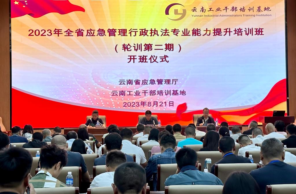 “2023年全省应急管理行政执法专业能力提升培训班(轮训第二期)”是由云南省应急管理厅主办,本年度在云南工业干部培训基地开展的第三期培训。全省、州(市)、县(市、区)三级应急管理综合执法人员,共144人参加培训。“2023年东西部协作携手兴乡村人才交流暨祥云县第七期青年干部培训班”是由祥云县委组织部委托干训基地开展的专业化能力提升培训,来自祥云县50名青年干部参加培训。