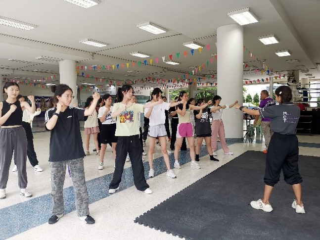 访学团同学在泰国帕纳空皇家理工大学开展了多元化课程的学习,积极参与到国际经济、现代智能加工、泰国插花艺术、泰拳、泰式纺染等特色课程之中。期间,同学们认真学习课程内容,积极向课程老师提问请教,主动与当地同学协作配合,得到合作高校领导、老师的认可。课程之余,访学团同学积极参与泰国当地文化活动,了解泰国历史人文知识,探究当地政治经济特点,充实个人经历。